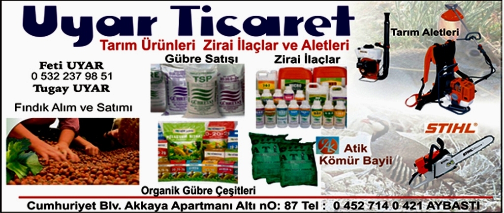 UYAR TİCARET Cum. Blv. No: 87 Tel: 714 04 21 AYBASTl